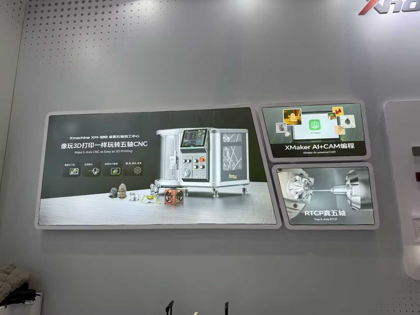 从现场表现来看,Xmachine XM-100的展出并不只是一次常规亮相,更像是一次关于桌面制造能力的真实说明。它先是在TCT Asia 2026这样的专业平台上展示桌面五轴的应用价值,随后又在突发状况发生后,直接通过金属加工完成现场替换,让观众看到桌面五轴CNC不仅能参展,更能在关键时刻及时解决问题。