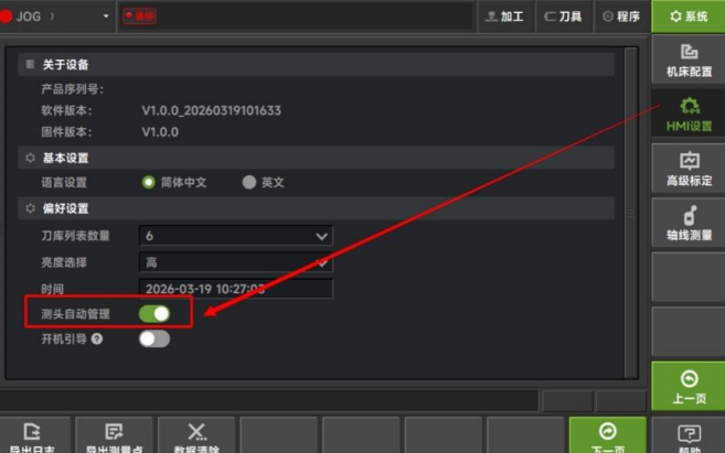 该功能需要在【系统】-【HMI设置】-【测头自动管理】处开启方可使用该功能
