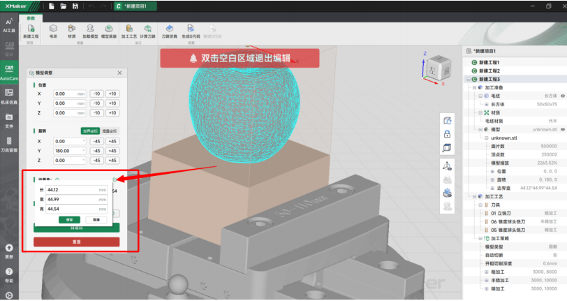 - 新增模型调整窗口修改尺寸功能在边界盒功能中,现已支持直接修改模型的尺寸信息,方便您快速调整加工尺寸。